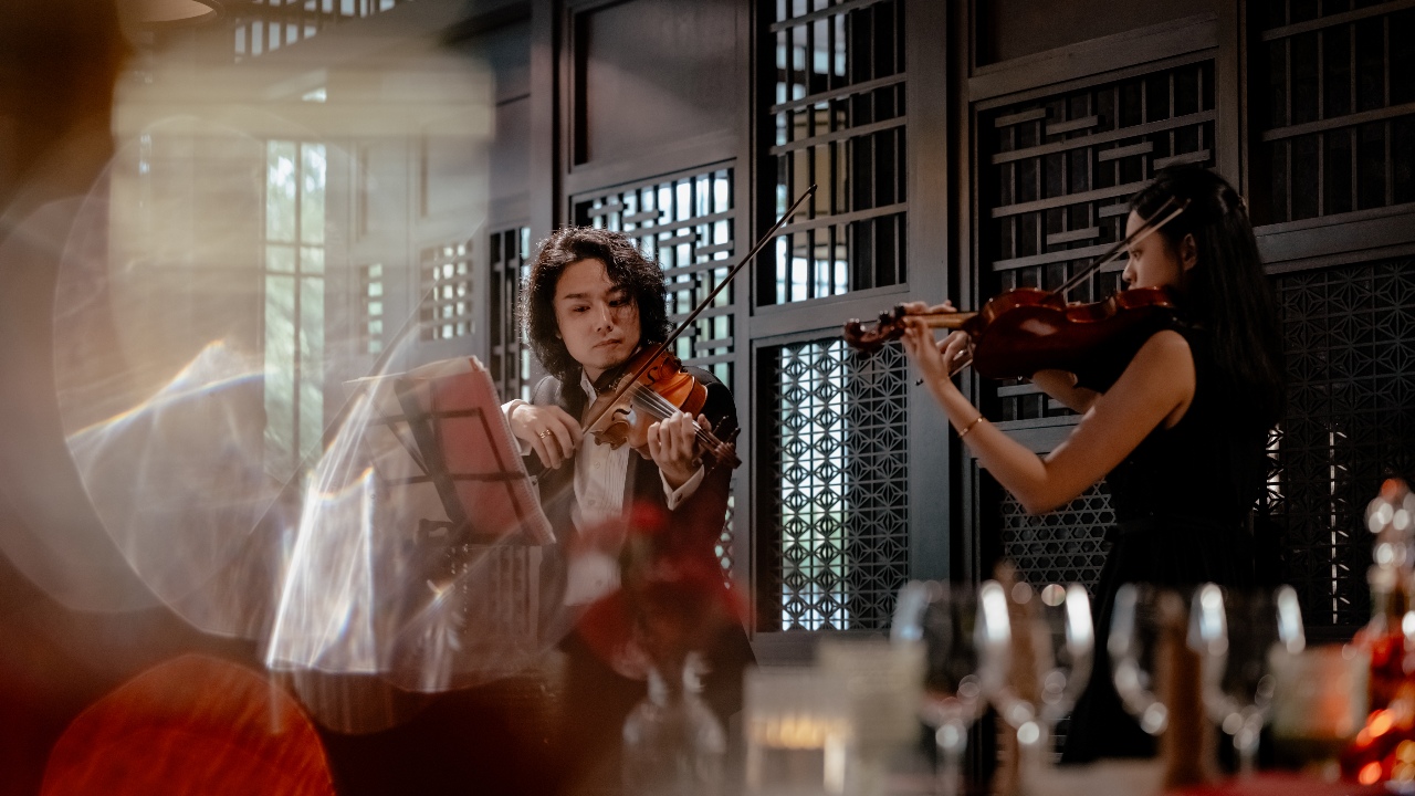 Guests, who arrived in a fleet of supercars including a Rolls Royce, Lamborghinis, and McLarens, were welcomed with strains of the violin by classically trained musician Ken Lee, who jazzed it up with rock interpretations of concertos.