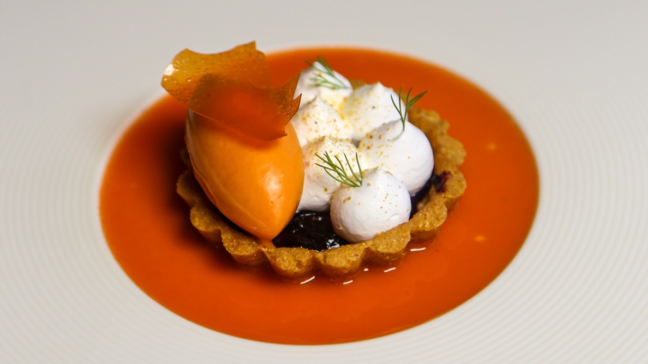 Although the palate cleanser is often regarded as a lesser-known component of fine dining, it always brings excitement. Here, it lays out in a triangular glass of gin fizz, concocted with zero-alcohol Botanica Ginzero. Chef de Cuisine Steve Ariffin notes that the invigorating substance is based on personal taste; while it might be a tad overwhelming for the taste buds at first, it becomes increasingly agreeable with each subsequent sip. At last, no meal feels complete without a honeyed finish. The dark chocolate crémeux, with whiskey-infused chocolate ice cream and macadamia nuts, is quite possibly the sweetest star of the show.