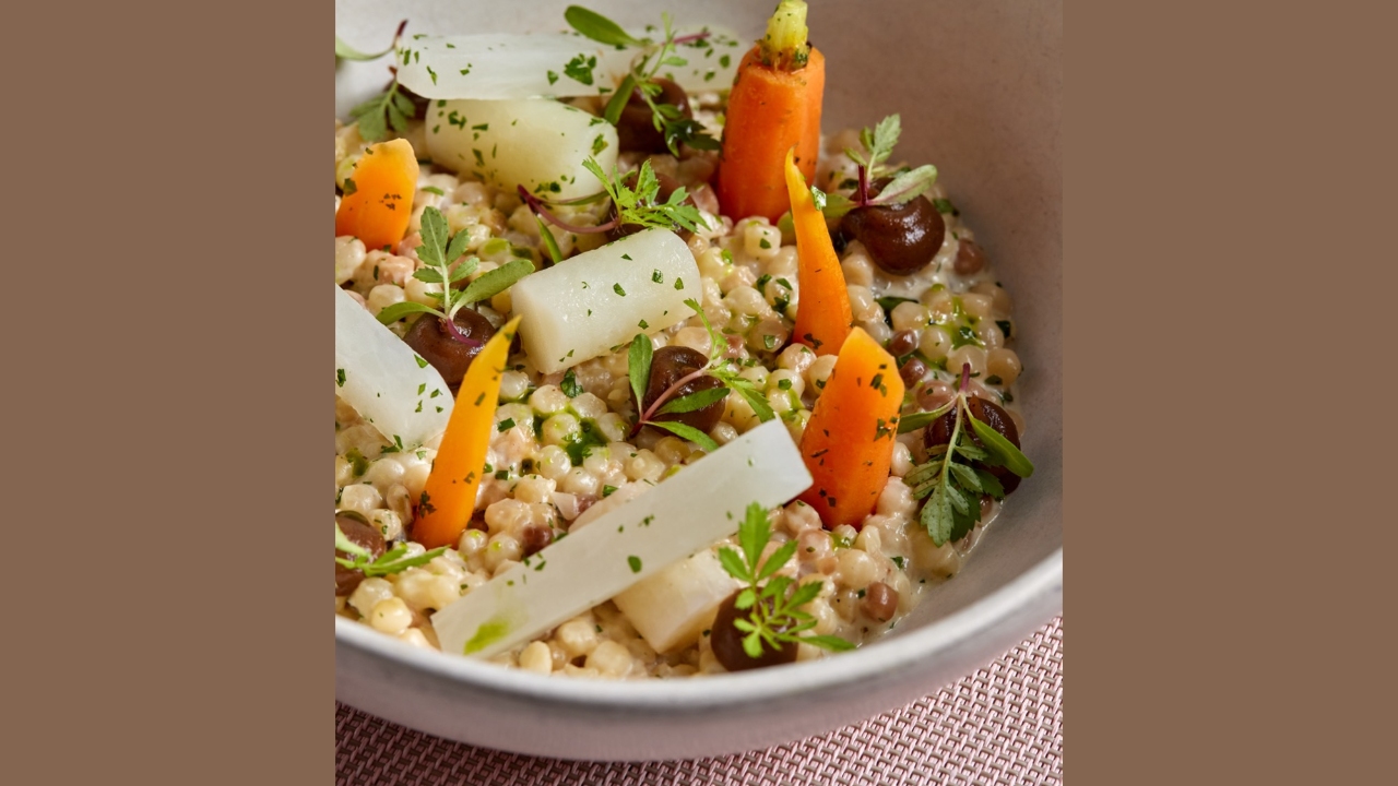 Moving on to the main course, the Red Snapper is served with white beam and squid ragout, braised gem lettuce and dashi velouté—a favourite among guests. The Fregola Risotto, on the other hand, is a contemporary twist to a traditional dish, and is complemented by roasted root vegetables, cashew nut butter and local kale. However, the next dish doesn’t veer too far away from tradition: the Norfolk Turkey, drizzled with cranberry jus, encapsulating the very essence of Christmas on a plate. Each tender bite is reminiscent of the warmth and nostalgia of the festive holidays. It may be a conventional dish but every forkful is a delight to remember throughout the season.