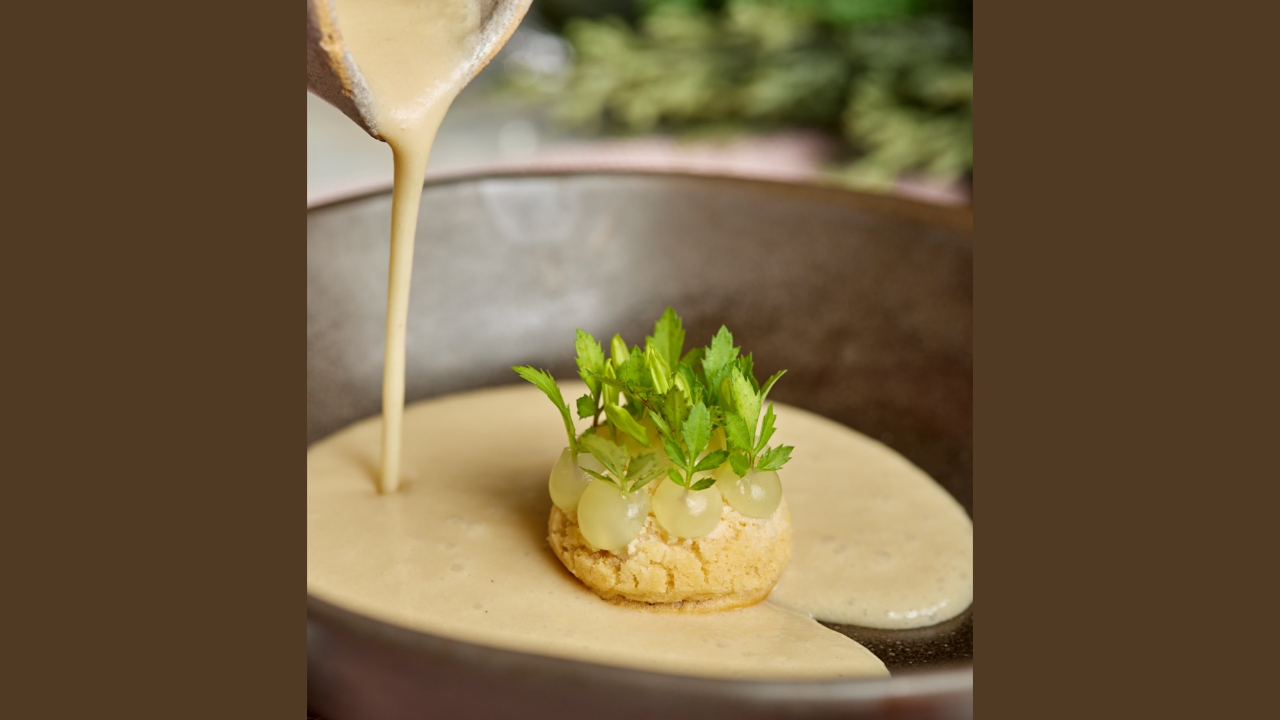 The next dish is inspired by Executive Chef Hooker’s London roots: Celeriac and Apple Soup, with chestnut and parmesan gougères and apple jelly. It was creamy, comforting and incredibly soothing, especially considering that the day I visited The St. Regis Kuala Lumpur resembled London somewhat—grey, wet and a bit too cold for comfort.