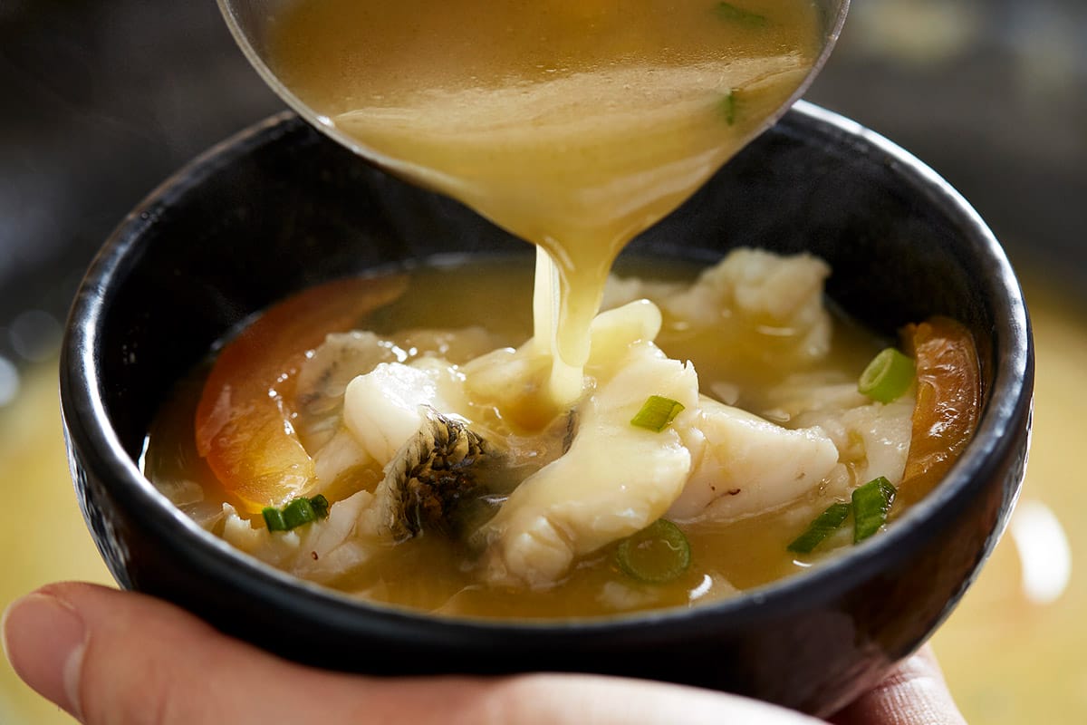 The marble goby fish soup is another showstopper and a comforting dish inspired by Chinese tomato soup. “This is a wild-caught marble goby. In Malaysia, most restaurants serve farmed marble gobies. There’s a difference,” the owner-founder explains. Prized for its silky flesh, the wild marble gobies have a cleaner taste, firmer flesh, and are richer in nutrition. Its innards and bones are simmered in the soup, resulting in a depth of flavour like nothing you’ve ever tasted before.