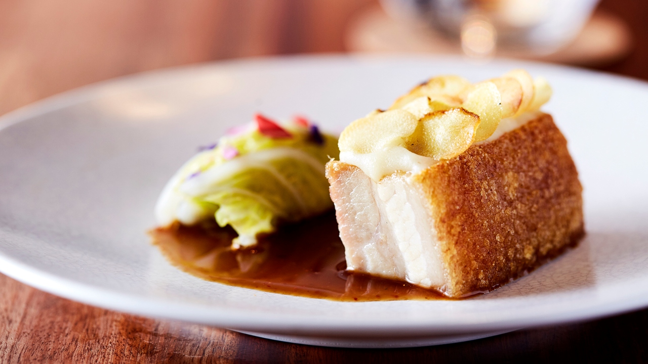The chef’s Japanese influences are especially apparent in the next course, a masterfully composed dish of an onsen “kampung” egg served with seasonal vegetables and dehydrated mushrooms with a genmaicha broth. It’s also easy to discern Koh’s Noma inspiration in the fish course which is presented with a smoked “bouquet” of herbs, edible flowers and pines picked by the chef. The recommended order is to take a whiff of the scented bouquet before tucking into the sea bass beneath it, finished with a dashi jus infused with pine oil. From smell, sight, touch and taste, this dish engages the senses and enhances the experience of this understated dish. Rounding off the mains is pork belly, a wobbly slab which had been cooked sous vide till mouth-meltingly tender, accompanied with a sauce made from slow-roasted pork bones.