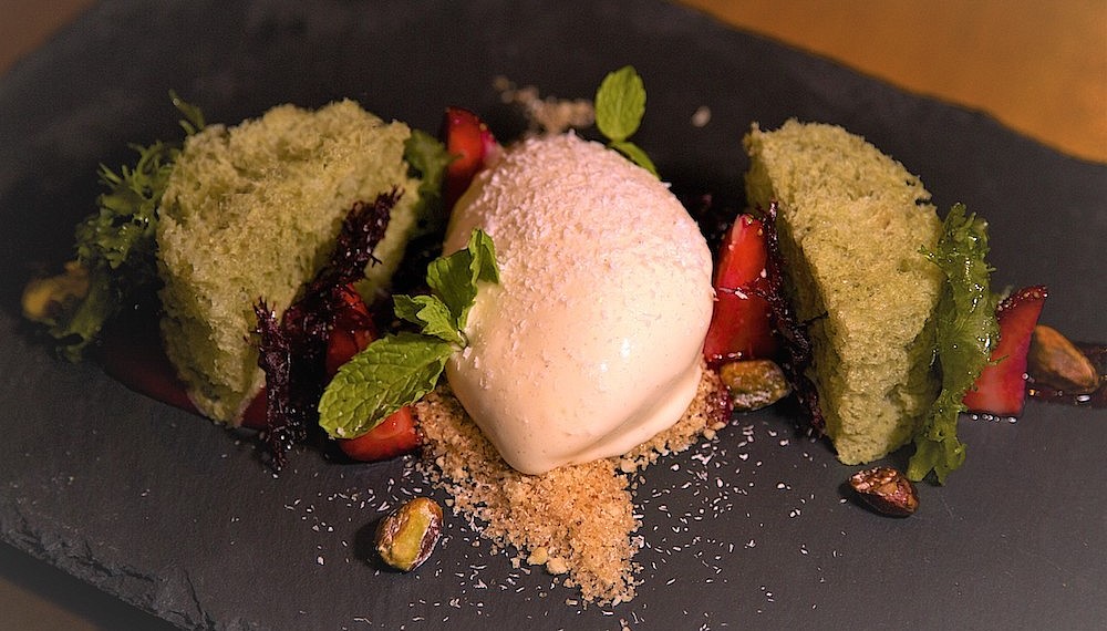 One might think the seafood theme stops at dessert; but one would be wrong. The Black Rainforest cake takes the form of a toadstool mushroom growing out of a forest floor of chocolate powder, but most impressive is the signature Strawberry Reef – a hurricane of flavours (including candied seaweed) that pays tribute to the corals slowly regrowing mere steps away from where your dinner is ending.