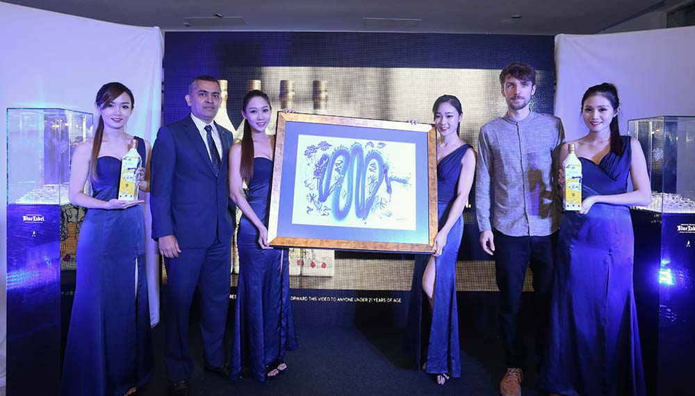 This is Zacharevic’s first brush stroke on a project of this class, the challenge being to produce a cohesive piece even when wrapped around the four sides of the angular Blue Label bottle. When lined up, a quartet of bottles display the full picture of Zacharevic’s creation: a graffiti-style dragon held up by young dancers dances playfully in the mist with a selection of Penang landmarks in the background. A small rooster also features, a reminder of the zodiac year this bottle is dedicated to.