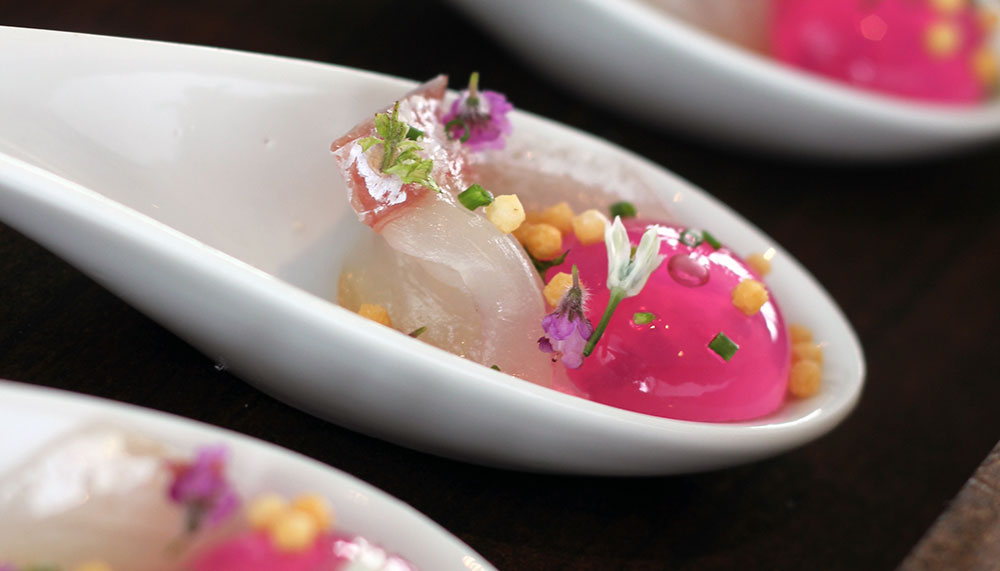 Up on the eleventh floor of Work @ Clearwater in Damansara Heights, stretching out from a sleek wooden pool deck and beyond to Kuala Lumpur’s twinkling skyline, is Jeff Ramsey’s very own playground. It’s a place where culinary magic of mad scientist-esque proportions attempts to stretch the imagination, whilst never falling short on pinpoint-precise plating and execution – as should be expected from a chef with one Michelin star already under his belt (Ramsay earned his at the Tapas Molecular Bar in 2008, at the Mandarin Oriental Hotel in Tokyo).