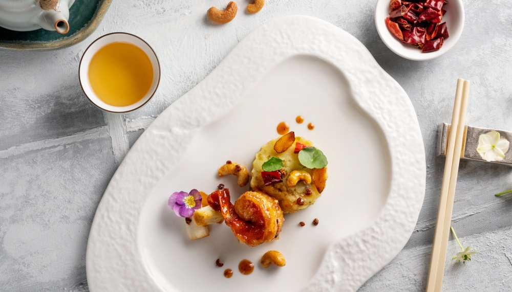 On a frosty winter evening in early December, the festival began with a gala dinner featuring the talents of the JW Marriott’s leading chefs in China, each of whom specialised in a particular regional cuisine. A five-course menu showcased classic dishes from Guangdong, Shanghai, Sichuan, Beijing, and Hangzhou, all executed through the modern, future-focused lens of the brand. Chef Leo Cao’s crispy Cantonese chicken, for instance, was accompanied by caviar and a chicken roulade, while chef Shuai Qiang of JW Marriott Hotel Chengdu served a spicy kung pao-style king prawn with mashed potatoes and pickled vegetables.