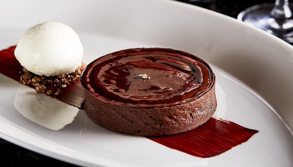 Two wines flanked the main, Cabernet Sauvignon, Katnook Estate 2008 and Cabernet Sauvignon, “Odyssey” Katnook Estate 2009. One lighter and one heavier, the wines each revealed a different facet of the main – grilled sher wagyu sirloin with Xerex vinegar-glazed pearl onions and potato gratin – changing the atmosphere to either spring, or autumn. With the thoughts of cooler seasons in the air, that was the perfect segue into a dessert of warm Valhorna dark chocolate tart with raspberry creameux and vanilla ice cream. A glass of Dow’s Fine Ruby Port lent a syrupy coating to the delicious and dark tart. As pairing menus go, this was a sated triumph. So cheers to that, Katnook.