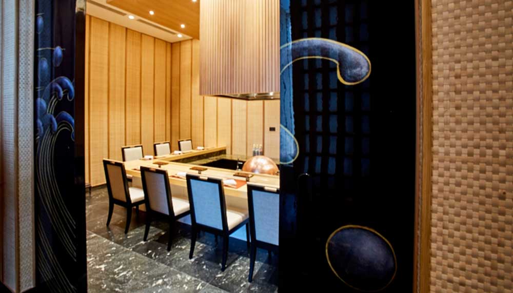 Behind hand-painted, lacquer-panelled doors, two jewels of Japanese cuisine await. Taka by Sushi Saito – Malaysia’s first restaurant to be opened by a three-Michelin-starred chef – lays out a sushi masterclass on its 300-year-old Hinoki wood counter. Its seafood, which arrives on a thrice-weekly basis directly from Tsukiji Market, is selected by chef Takashi Saito himself. Ginza Tenkuni’s Edo-style tempura is crafted using traditional techniques that date as far back as 1885, boasting a crisp, feather-light batter that’s fried in a top-secret blend of oils. Both restaurants cater to the eight private dining rooms available for private functions, all of which are beautifully framed with baton Ajiro-ita weave board panelling.