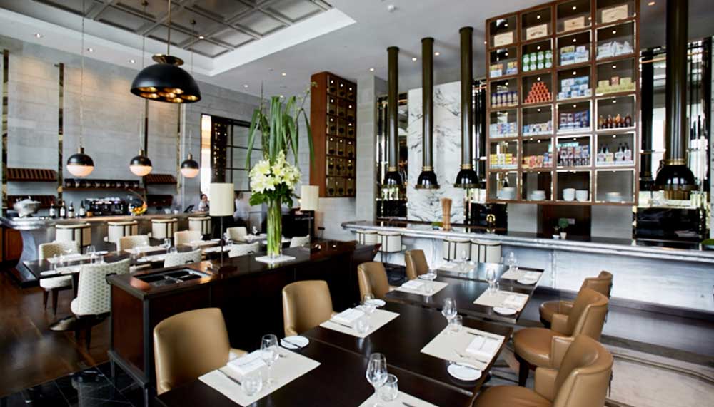 It is impossible not to be awestruck by The Brasserie’s marble-lined walls and pressed tin ceilings. By day, it serves sophisticated, modern European cafe offerings. And in the evening, the kitchen delights diners with contemporary French-Mediterranean sharing-style dishes. A creamy burrata, served atop ruby-red French heirloom tomatoes and drizzled with balsamic vinegar that’s been aged for 12 years, encapsulates the restaurant’s focus on sourcing produce of the finest quality. The grilled fish of the day – in this instance, a sizzling hot Corsican sea bass with the simplest accompaniments of lemon, olive oil and a rustic dish of ratatouille – is guaranteed to be devoured to its bare bones.