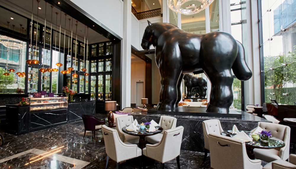 Beneath The Drawing Room’s towering horse sculpture – a specially commissioned art piece by Columbian artist Fernando Botero – soak up the refined ritual of the St Regis afternoon tea. A tradition polished to perfection by Caroline Astor, the mother of John Jacob Astor IV – who founded the original St Regis Hotel in New York – the service offers scones with English clotted cream, dainty pastries and confections, and a decadently rich chocolate cookie shot. While you tease your palate with canape-style king crab, foie gras and Scottish smoked salmon sandwiches, a tea sommelier will assist you with navigating the expansive loose leaf tea selection.