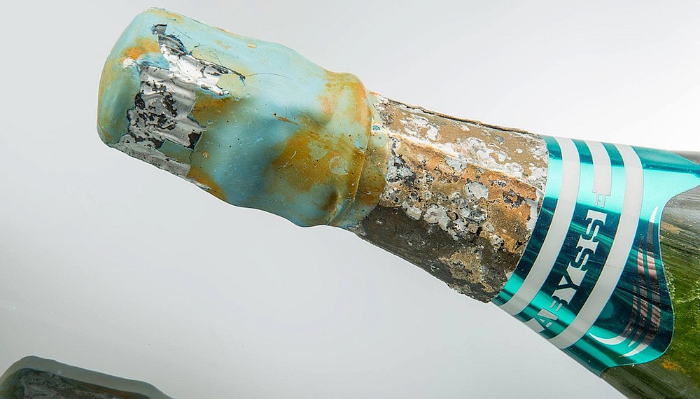 “All sides of the large, rectangular, customised steel box in which the Champagne bottles are placed are enclosed, with the exception being the top of the box, which is a steel grate,” explains Bobby Brower Jr., president of Brower Family Wines, the importer of Abysse in the USA. “The open-grated top allows the ocean water to flow freely between the bottles, creating even water distribution throughout the submerged bottles while also exposing each bottle to extremely subtle temperature and current fluctuations. Each bottle’s cork is waxed over, preventing water or oxygen from entering the bottle,” he says. After the bottles are ocean-aged for a year, each is packaged and presented exactly as it was found when removed from the steel boxes. The sand, shells, starfish, and other unusual attributes are all unique to each bottle. “The ocean determines the ‘label’ of Abysse,” Brower says.
