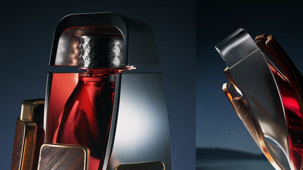 Six “upcycled, repurposed or ethically sourced” materials are being used for the bottle, according to the brand, which is an homage to the Six Pillars of identity that define the distillery (spiritual home, curiously small stills, finest cut, exceptional oak casks, natural colour, peerless spirit). To that end, materials include recycled copper taken from the stills in the old distillery, aluminum recovered from Bentley’s manufacturing, and recycled wood and glass. “The form of the design has allowed us to almost treat light as another material in itself, and the interplay between light and the wood, aluminum and copper materials is extraordinary,” Bentley head of design collaborations Chris Cooke said in a press release. “In being both an object of beauty in itself and demonstrating such innovation, it’s a representation of what’s coming next from our partnership.”