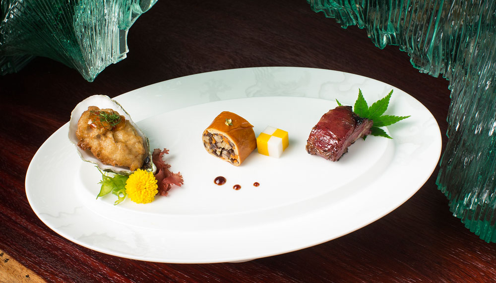 In head chef Tam Kwok Fung, the restaurant’s menu offerings are an amalgamation of his stellar 30-year career which has seen him cooking for heads of state and royal families. Tam, who is also City of Dreams’ Director of Culinary Operations for food and beverage, melds his deep mastery of Cantonese specialities with a penchant for specialty ingredients. Meat is sourced from registered organic farms in Australia and the Netherlands, with seafood originating from France, Japan and the South China Sea. Even the herbs are organic; a collaboration, with the Chinese Medicine research team of the Macau University of Science and Technology, results in a range of Chinese herbal soups by Chinese herbal practitioners.