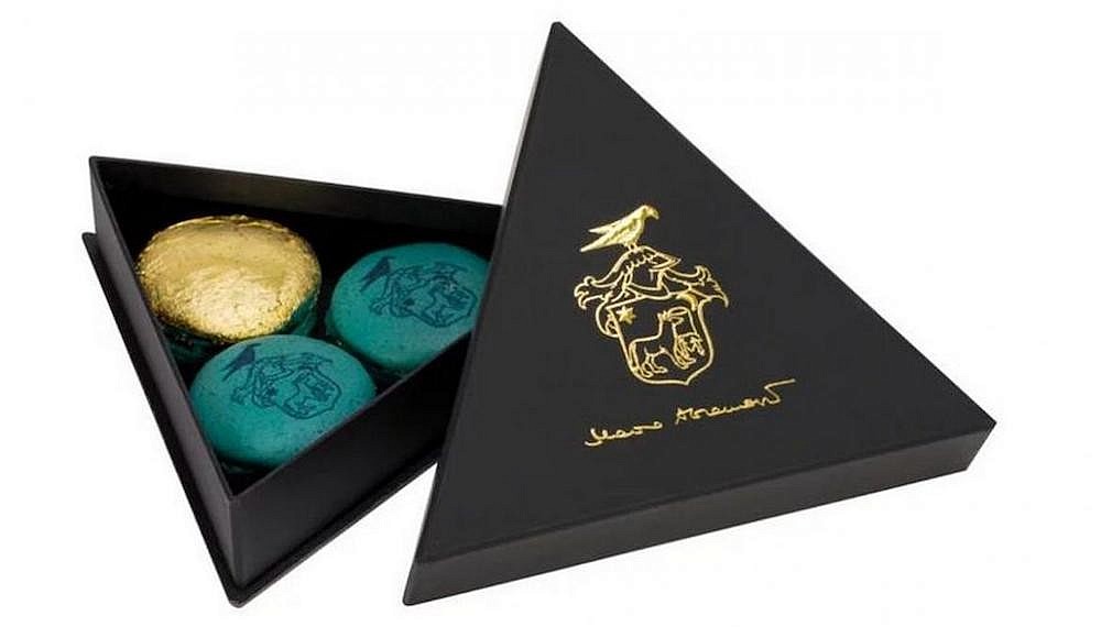The first in a collaborative series by art advisor Raphaël Castoriano of Kreëmart titled ‘Pastry Portrait’ – which pairs luxury bakers with contemporary artists – the Abramović macarons are coloured Prussian blue, a warrior hue that reminds her of the parents and the ocean, as well as leaving a guilty blue stain on the tongue. Packaged in triangular boxes of three, each macaron is stamped with Abramović’s recently re-discovered family crest, depicting a wolf eating a sheep. Just to be different, one of the sugary treats is wrapped in gold leaf. Introduced at Harrod’s last October, then rolling out worldwide, this is another example of how the world of modern art can infuse even the most innocent of things with deeper meaning.