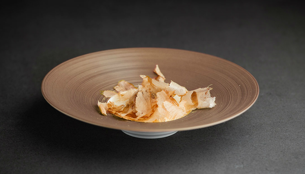 The signature palate cleanser here takes the form of apple with salted caramel and walnut — a creation that draws inspiration from chef van Oosternbrugge’s famous Green Apple dessert from Bord’eau, which sees a green apple sorbet encased in a transparent sugar glass bubble sitting on a round puff pastry base.