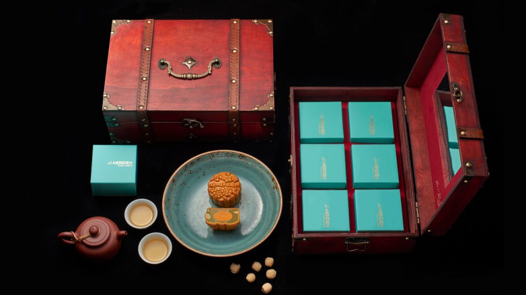 Indulge every member of the family, including travel and whisky aficionados with the ensemble presented by Le Méridien Kuala Lumpur. Encased in a lavish, deep red chest inspired by the mid-century vintage travelling trunks of yesteryear that could double up as a jewellery case, these luxurious delicacies include the luxurious Chivas Whisky with Golden Raisins flavour (RM45 per piece). A minimum 3-day notice is required for this decadent mooncake as it allows for the raisins to soak in the Chivas whisky. Club Marriott and Marriott Bonvoy members as well as cardholders of Maybank, CIMB Bank, HSBC, Hong Leong Bank, Standard Chartered Bank, Citibank and United Overseas Bank (UOB) get to enjoy an exclusive 10% savings on all mooncake purchases.