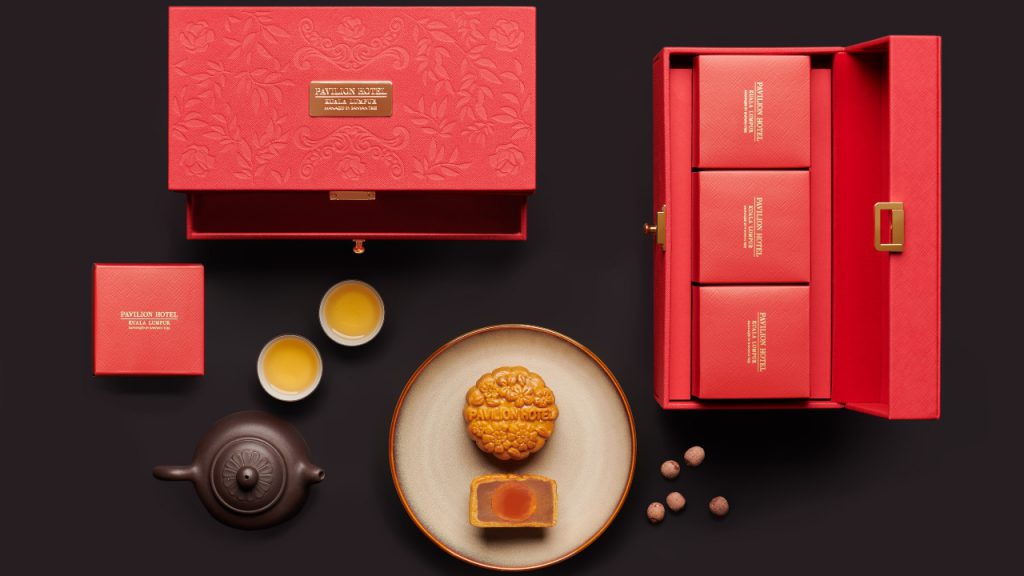 The Pavilion Hotel Kuala Lumpur managed by Banyan Tree offers evergreen signature flavours in traditional baked mooncakes with options such as a Yam Lotus Paste with Single Egg Yolk (RM32) as well as the Pandan Lotus Paste with Single Egg Yolk (RM32); in total there are six options including Red Bean Paste and White Lotus Paste options. Each Pavilion of Treasures box (RM188 nett) comprises six medium-sized mooncakes, and are presented in a design resembling a jewellery box. Early bird savings of 20 per cent apply for purchases up till 15 September.