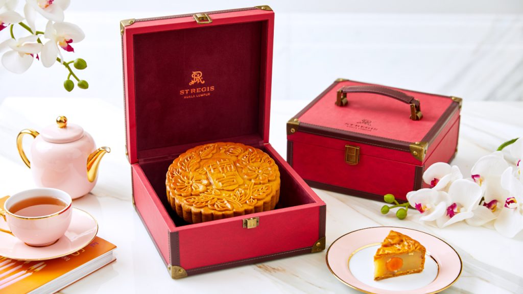 St. Regis Kuala Lumpur are once again offering their signature 6.5-inch super mooncake with a dizzying 8 yolks and the finest ingredients. Gift your cakes in the whimsical travel trunks which are elegantly kitted out in red faux-leather with vintage brass studs and clasps. These Mid-Autumn gift sets are perfect for repurposing after you are done enjoying the tasty delights. The Classic Trunk houses 4 lotus seed single egg yolk mooncakes (RM180) while the Super Mooncake Trunk houses the 6.5” Prosperity Mooncake (RM200).