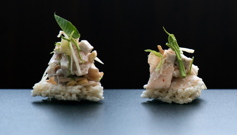 Before finalising the present award-winning menu, Chef Techamuanvivit took a road trip through the northern regions of her home country. The result? Discoveries of rare produce include green grain rice that replaces jasmine rice, which was served at the restaurant in previous years. There is also palm sugar, sourced from an elderly couple in Prachuap Khiri Khan province, who make it by hand.