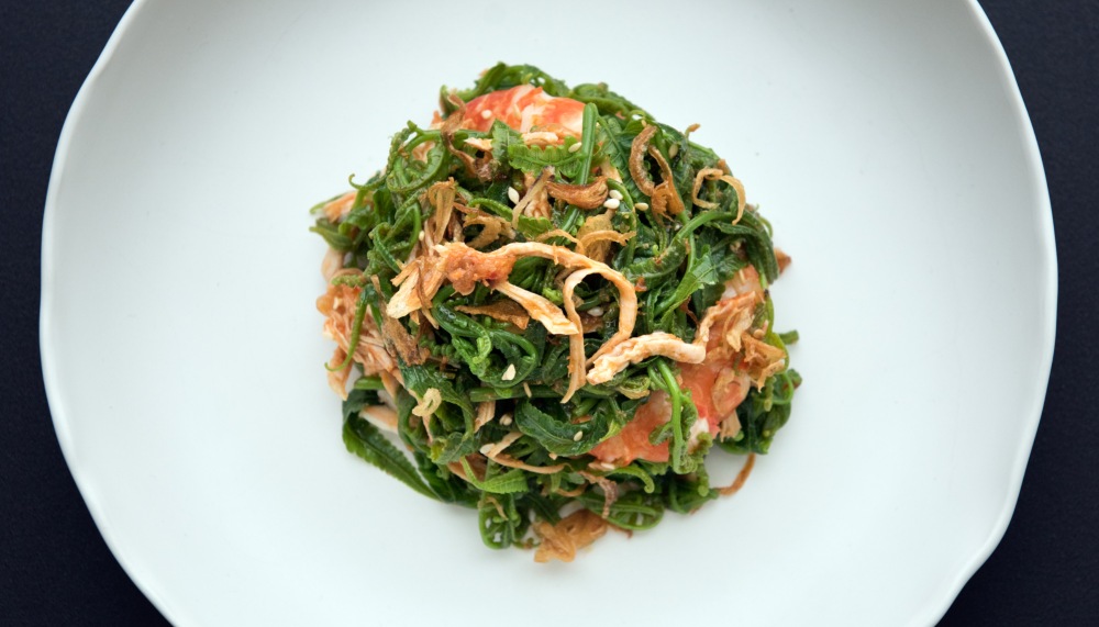 Chef Pim Techamuanvivit, a food writer (her former blog Chez Pim had a following of both insider American chefs and ardent Thai food fans) and owner of the one Michelin star Kin Khao in San Francisco, takes Nahm on a maternal spin through Thailand’s bucolic farm country. A keen supporter of local food producers, she revolves her menu on home-grown crowd-pleasers like banana blossom petals served with seasoned crispy fish; miang of lobster, chicken, green mango and snake fruit; wagyu herb soup; and lamb massaman curry with lychees, tender potatoes, and crispy shallots.