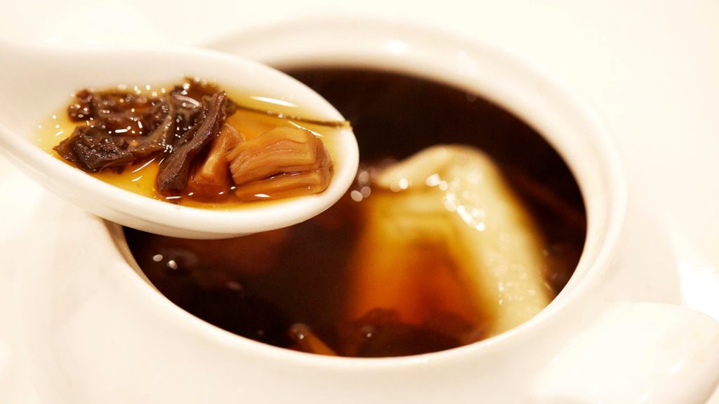 Priced at RM288 per person, the dinner uses Chinese ingredients prized for their wholesome, strengthening properties and employs traditional cooking techniques like braising, double-boiling, and steaming to thoroughly extract as many nutrients as possible. At the same time, Yap, Chung, and The Oriental Group ensure that the concept of healthy, immunity-building food never eclipses the importance of taste. As a result, diners can look forward to barbecued chicken coated with a generous sprinkling of flaxseeds; a restorative double-boiled soup of black garlic and Roxburgh’s Jewel orchid; and gelatinous sea cucumber expertly deep fried until its exterior becomes crisp.