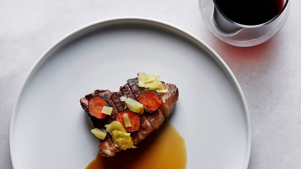 Timmermans’ drink pairings are similarly refreshing, eschewing the heaviness of an all-wine lineup in favour of far more interesting beverages, including an ultra-smooth Chitosetsuru Tanrei Junmai saké from Sapporo and a locally brewed Chill Bill Mosaic IPA with tropical overtones. When grapes do play a part, it’s in an orange wine from Château Fabre Gasparets – Le Camin Viognier 2019 – centred around carbonic maceration, or a uniquely fruity Château de Luc ‘Les Jumelles’ 2018 that proffers aromas of ripe figs.