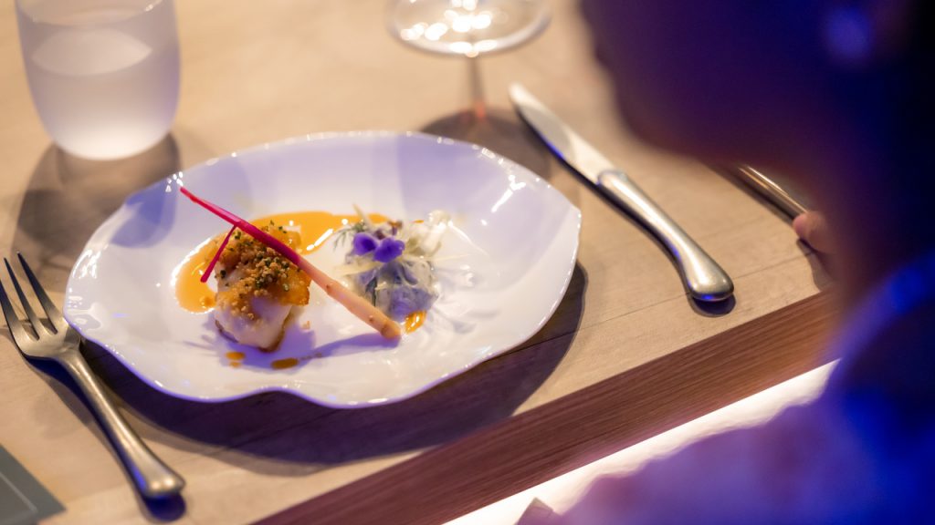 It would not be long before the bevy of hostesses at the Taste Studio would usher the guests through the doors, across a walkway and into a theatrical dining area. Here, guests were fully immersed and introduced to the novel pop-up concept of the Regent Taste Studio, a one-of-a-kind dining experience which revolves around a constellation of creatives; artists, fashion designers, film producers and musicians, in concert with Regent chefs to craft indelible moments.