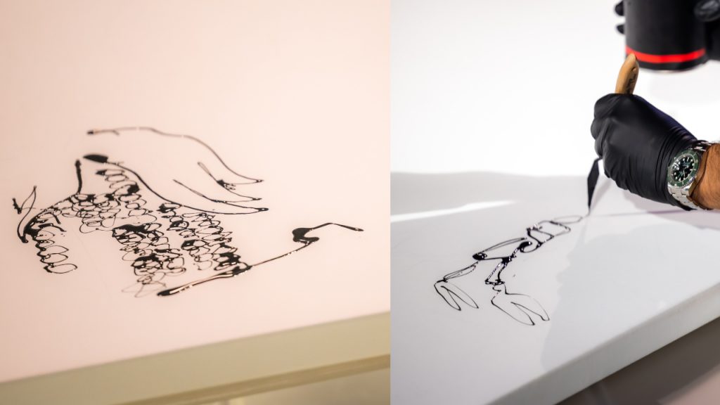 And as the end of the night arrived, another surprise was in store for guests. Carefully wrapped in velvety dark paper was an autographed and numbered picture by Mr Dripping, an artwork inspired by the concept of “Land Meets Earth” with elements of a knife, fork and plate, as well as a white dripped line symbolising a wave breaking on the shore.
