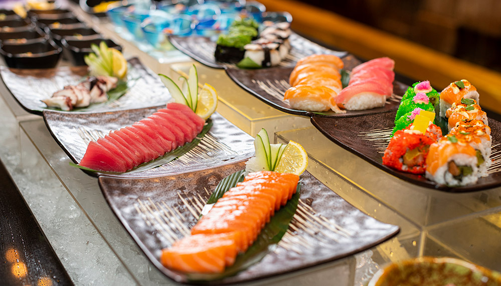 Visit the Japanese corner for all-you-can-eat sashimi, or add a little decadence at the restaurant’s caviar station with a selection of “the freshest roes”.