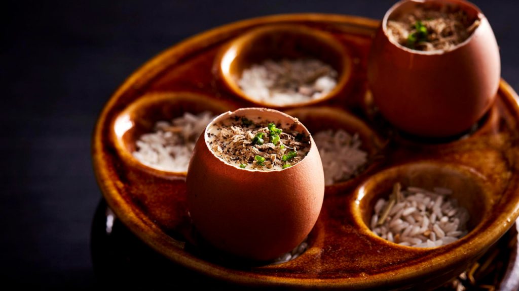 Structuring a menu in which Western and Eastern flavours would appear in succession repeatedly throughout a degustation menu, was another issue. What prevented Souvenirs of the Past from becoming too much of a rollercoaster ride for the palate was Chai’s adaptable style of cooking, which dipped good-naturedly into European tasting notes and culinary techniques. His signature hot and cold egg—a tribute to Chai’s late father—was served with Dutch smoked eel and truffles (courtesy of a partnership with supplier Classic Fine Foods), while his lobster and pesto congee took on a risotto-like consistency.