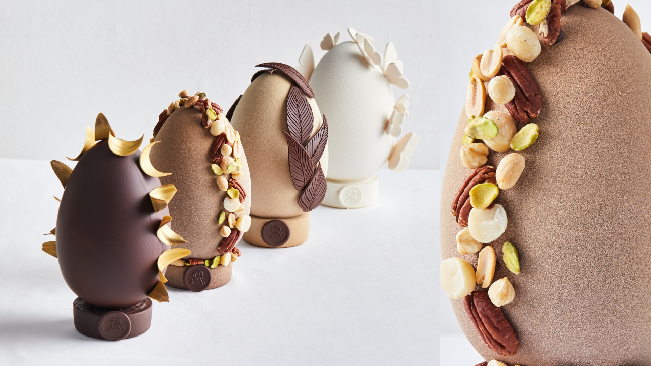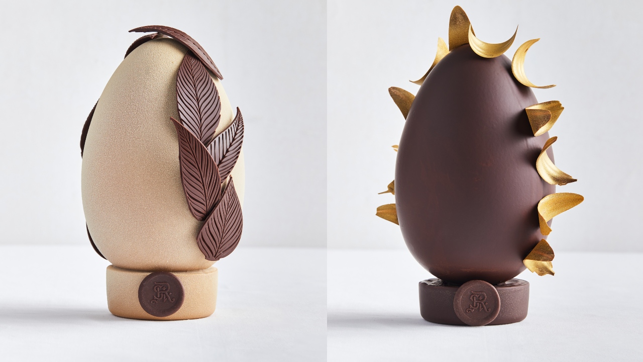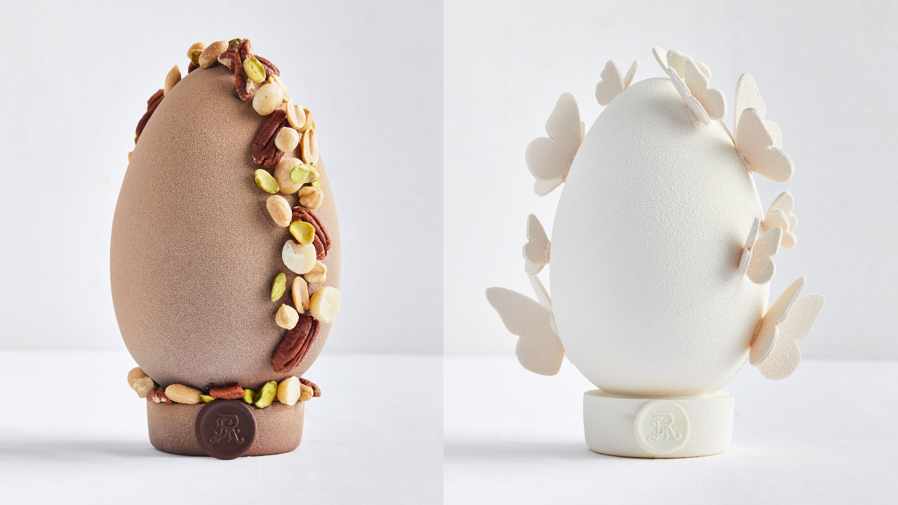 It takes several hours and the deft hands of a skilled pastry team to create these elegant eggs. “First, we temper the chocolate and use it to create the egg shape using a mould. Then we hand-cut the delicate designs, like our signature butterflies, feathers, and leaves, before carefully decorating them on the eggs,” explains Moutet. “The most difficult aspect of making our limited edition Easter eggs has to be the delicate nature of our designs, such as the intricacy of the thin-as-paper gold leaves, which requires a lot of time and patience to handcraft each one to perfection.”