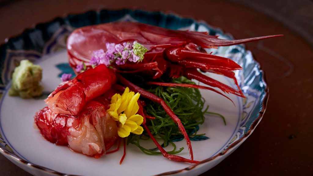 Courtesy of his globe-trotting career, the menu also incorporates an eclectic use of Carabinero shrimp, served on a bed of kelp and freshly grated wasabi.