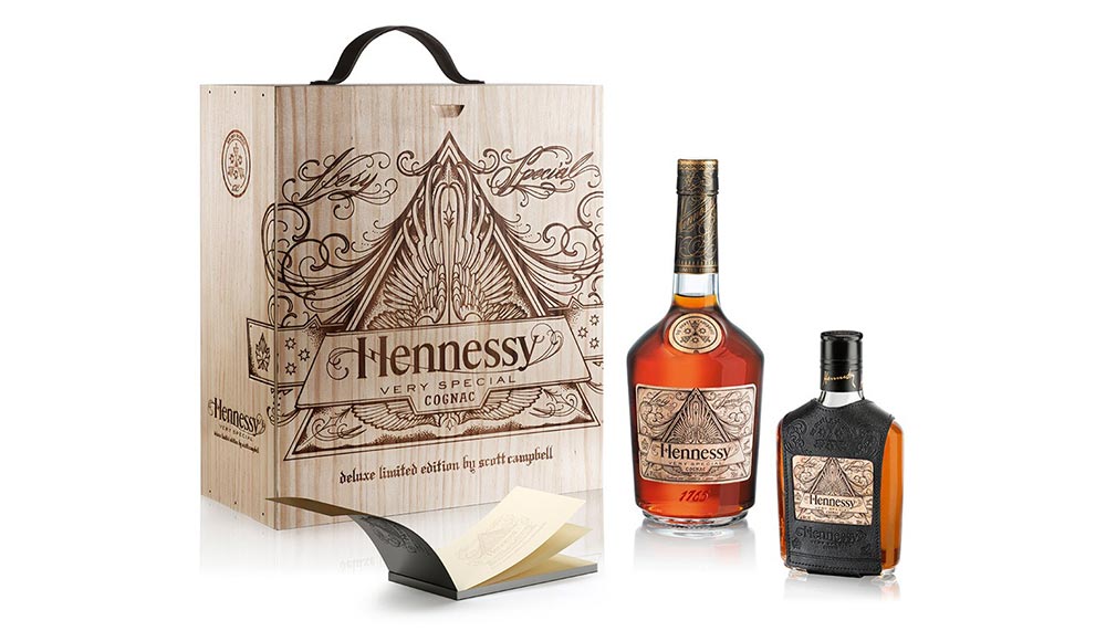The Hennessy V.S Limited Edition Deluxe Set features a numbered flask with a leather sleeve, a sketchbook of designs of Scott Campbell and a keepsake booklet with a behind-the-scenes look at the collaboration. Available now for US$150 (RM595).
