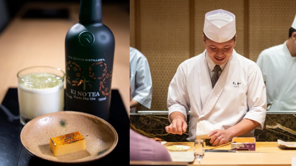 PThe highlight of the pairing menu is undoubtedly the Sushi section, featuring 10 courses and paired with the French 75 Twist made with the limited-edition KI NO BI G Edition. Sakuma and Chef Yazawa both explained that the courses—from the Kasugo (Young Sea Bream) and Sawara (Spanish Mackerel) that kicks off proceedings to the Tamagoyaki (Egg Roll) and Miso Soup that rounds things off, and everything in between—showcases the beauty of the seasons in Kyoto. And, when savoured with the G Edition gin, the totality of the omakase pairing menu becomes shiawase on a plate—happiness, good fortune, and blessings.