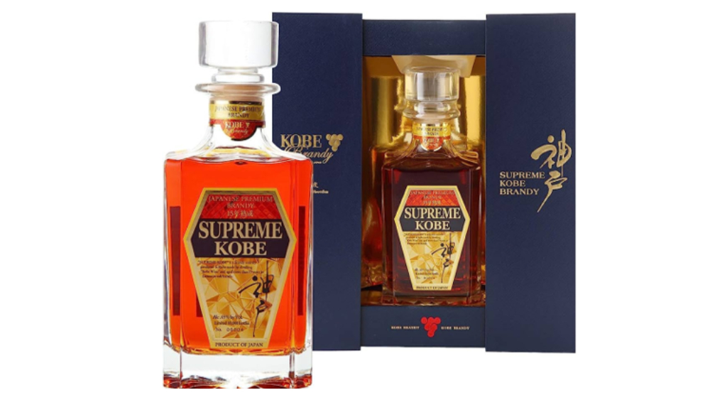 This brandy is made by distilling Kobe wine twice in a single distillation pot using the same manufacturing method as cognac. The grapes used to produce the wine are all hand-picked and grown in Kobe. Aged for 15 years in Limousin oak barrels from France, the brandy has a strong and mellow flavour, with a rich fragrance.