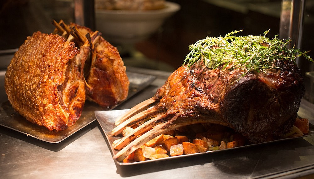 Among the multicultural starters on offer include luscious fresh oysters, chunky lobsters, decadent foie gras (there are several delicious variations), prime rib, beef or salmon Wellington. At the international station, meats charred as much or as little as one desires, are served to the table as is a selection of pasta dishes, which the hotel’s Italian restaurant Biscotti is suitably proud of.