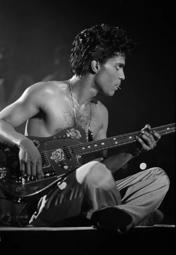 Prince’s electric guitar comes from his post–Purple Rain days, appearing in his 1985 music video for “America” and on stage during his 1986 Parade Tour. John Woodland, a historian of Prince’s guitars, said in a statement that “out of all six guitars Sadowsky made for Prince, the purple floral one saw the most use.” Prior to Prince’s 1988 Lovesexy Tour, the guitar ended up in the possession of Sheila E., who received a letter from Sadowsky confirming that serial number 179 was one of the guitars made for Prince.