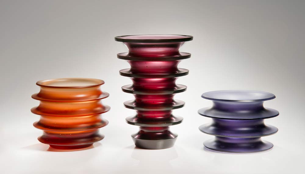 “There’s an exploration of how far you can push the material,” says Stopler, who has pioneered lathe-turned waxing and revived the ancient use of a jig system with abrasives in order to create very precise, complex forms otherwise difficult to achieve. “Of course, glass still covers both bases – it’s often artistic and functional. There are sometimes elements of the domestic, that familiarity, but it’s also sculptural. I don’t think it has to be one or the other anymore.”