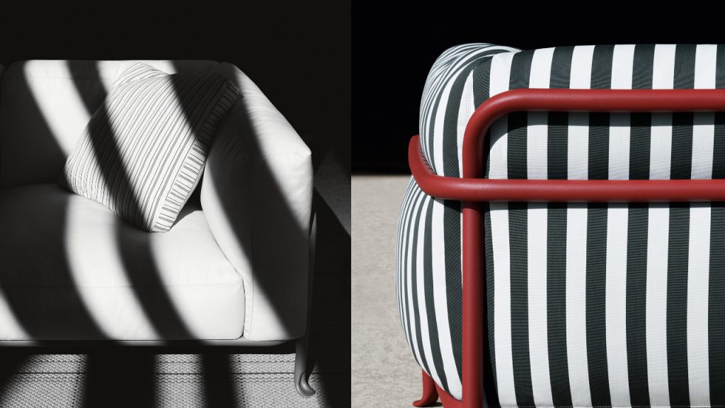Borea, which also debuted in Milan recently, is Piero Lissoni’s vision of a timeless outdoor collection; technologically advanced and resistant to the elements – akin to an aeroplane on a tarmac. This collection is one focused on sustainability with its use of recycled and recyclable materials for a collection which includes two- and three-seater sofas. Borea is composed of stackable aluminium structures painted in natural hues; sage, clay, dove grey and anthracite with padding from recycled PET plastic bottles – up to 510 1,500ml bottles are required to create the padding on a three-seater. Generous cushions add to the degree of comfort, which are similarly developed to be sustainable.