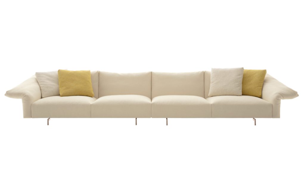 Lissoni also created one of the most compelling pieces in the collection, ‘Dambo’, the third sofa system that he has designed for the brand. At first glance, it seems to be characterised simply by plush ergonomics, but its structure is surprisingly complex. The pentagonal base elements, with their large dimensions and great flexibility can be used as peninsulas when combined with other elements or as free-standing monoliths.