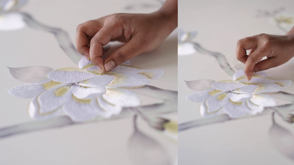 Embroidery is then added to the wallpaper through the artisans’ practised hands. Founder Claud concedes that de Gournay’s challenge is in the limited number of artisans who can paint and also work on its bespoke wallpaper. “Our biggest challenge is that everything we do is hand-painted by artists. Our products are all works of art, and art is luxury,” he says. “And our problem is that we don’t really have an incredible supply of artists.”