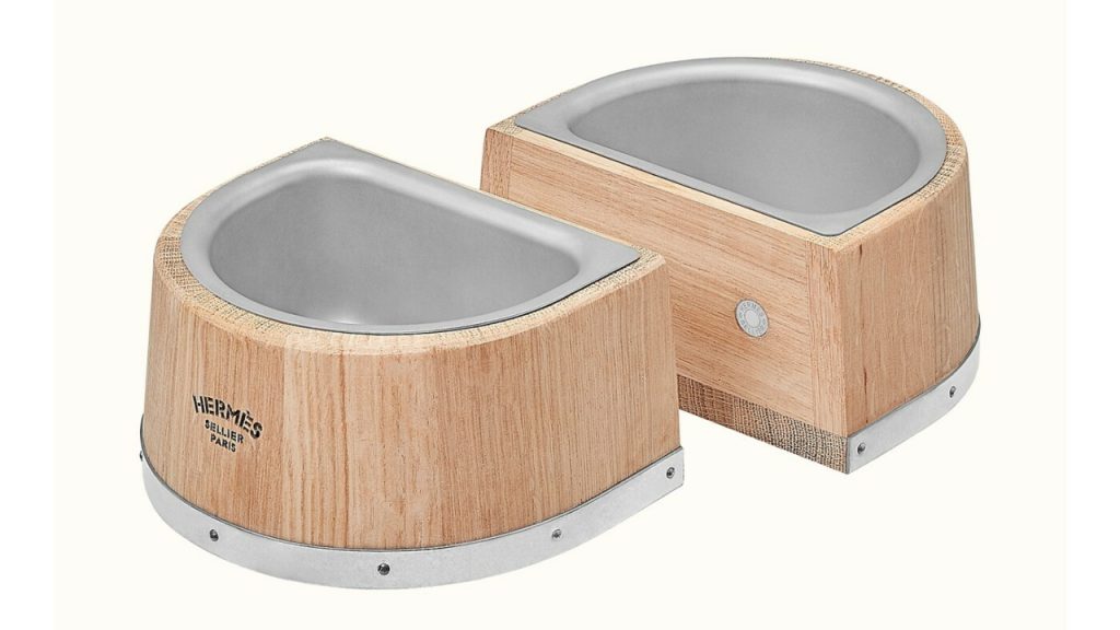 For the bowl, Hermès’ has gone with oak wood, which is often used for wine production; they have also specifically selected wooden slabs from oak trees that have been growing for at least 90 years. If the Hermès dog bowl is crafted from even just two of the other techniques used to make barrels, buyers can be sure a lot of work went into its creation. The French fashion house sells numerous pet goods, from collars to leashes and carrying bags, but its new dog bowl is truly something special.