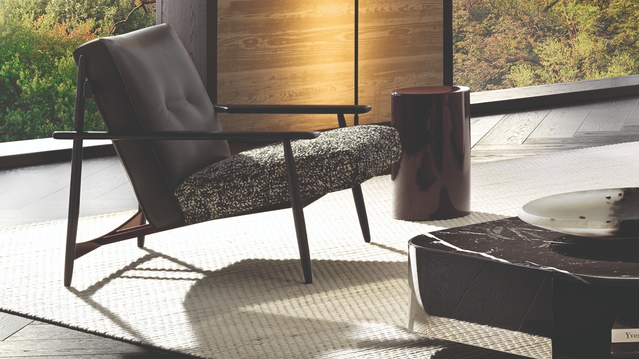 Marcio Kogan/Studio MK27 injects a Brazilian twist into Minotti’s collection with the Trio armchair. Named for its use of three different materials—leather, fabric and wood—this solid furnishing piece showcases the refinement of Brazilian cabinet-making in the multi-sectional woodwork of its frame. The Trio armchair also comes in an outdoor version that combines teak wood with a woven wicker-effect cord frame, making it ultra-lightweight, perfect for lounging on the terrace and enjoying the breezy ambiance of an Italian summer.
