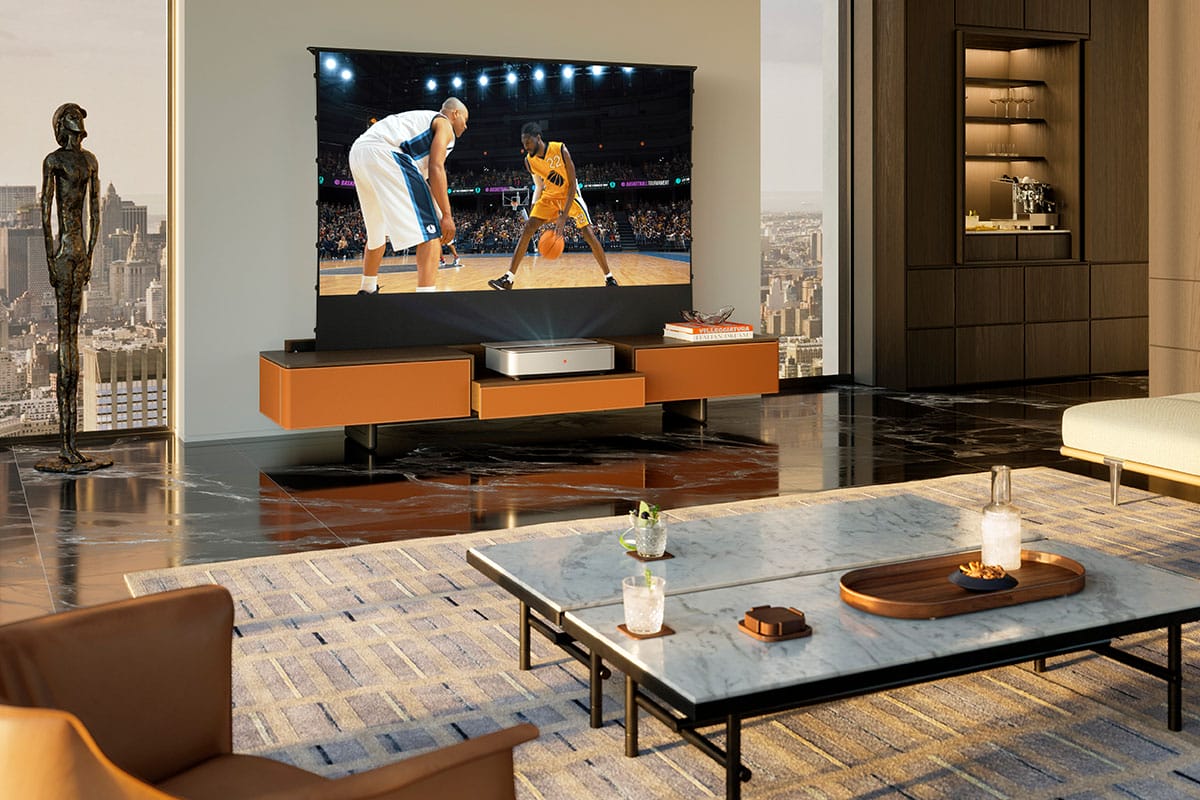 The brand has also partnered with Leica, embracing the future of tech-integrated living. As the world advances, so does Poltrona Frau. Together with the premium camera manufacturer, Poltrona Frau unveils a unique configuration of the Fidelio Multimedia Cabinet by Roberto Lazzeroni. Now, it is adapted to house the Leica Cine 1 smart laser TV—a bestseller in Leica’s portfolio. The central recessed shelf is tailored for the projector placement, with two push-pull drawers flanking each side. It also features a discreet groove to conceal the motorised projection screen when not in use—a gamechanger to the home cinema experience.