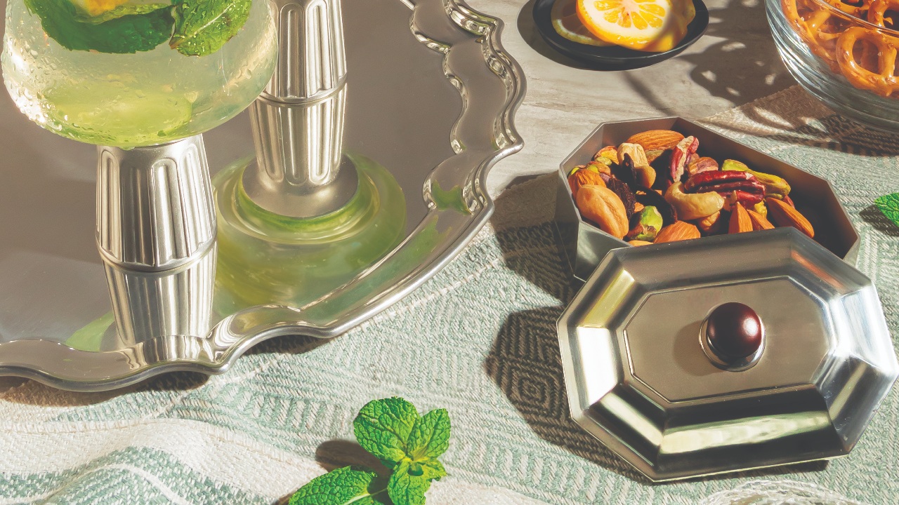 Impress your guests this Eid with tastefully selected pewter pieces that will add a touch of elegance to your festivities. Instead of serving your kuih batik, baklava, and bonbons on dishes, artfully arrange them on the Atiya Nut Tray. As Hari Raya is a time for sharing, each dish is conveniently removable to pass around nuts and nibbles.