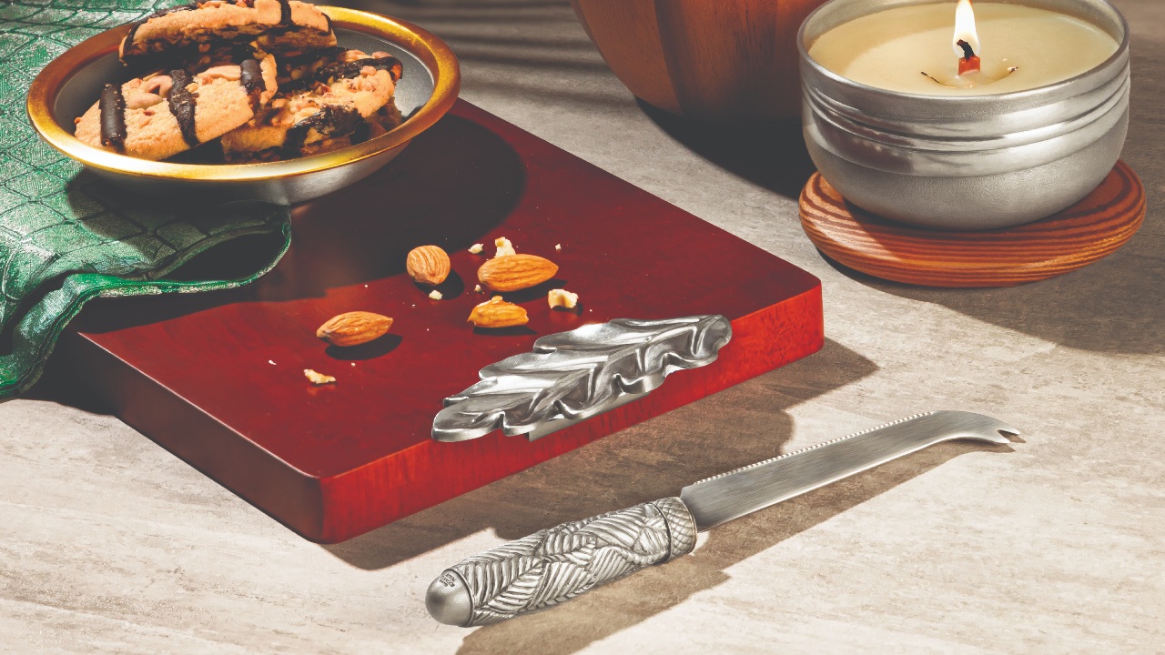 With the combination of dates and butter being all the rage, use the Woodland pronged knife to prepare the indulgent treat, also handy for breaking up blocks of hard cheeses like Pecorino Romano. Otherwise, for the health-conscious guest, prepare a colourful assortment of seasonal fruits with the exquisitely crafted Lumos fruit bowl, with a wooden base and pewter sides. Next, serve goblets of refreshing drinks like iced bandung in the Vienna Glass, a strikingly modern glass bowl that surmounts an equally fluted column of pewter.