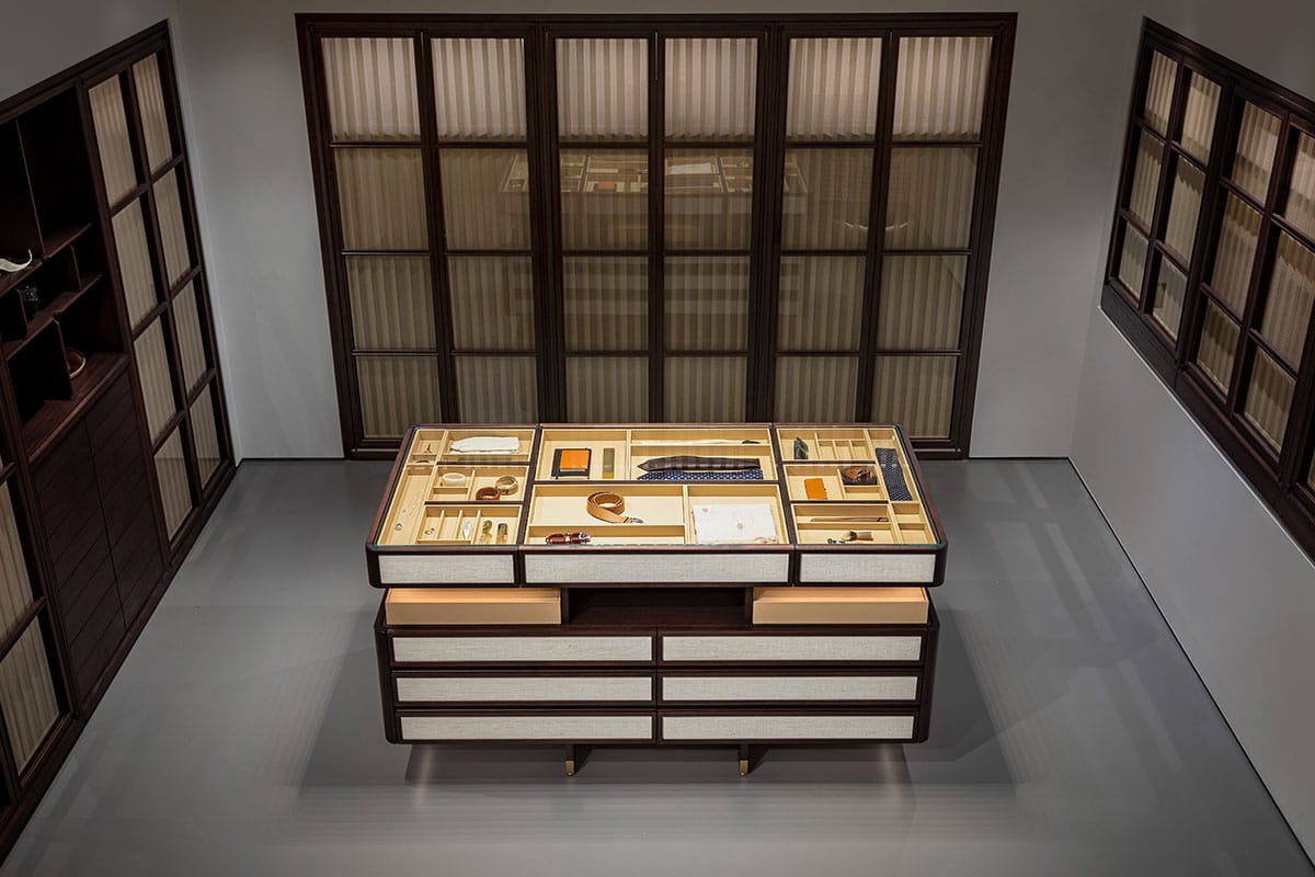 The new Rituals—Stories of Gestures collection by Ceccotti Collezioni is a deeply considered exploration of how design reframes the rhythms of everyday life. Informed by the cadence of domestic rituals—such as making tea, dressing, or preparing for rest—the collection reimagines furniture as intimate companions to these gestures. Christophe Pillet’s Teahouse suite interprets the tradition of the Japanese tea ceremony through a minimalist low chair, table, cabinet, and console, crafted in solid American walnut wood with chamfered edges, leather straps, and brushed brass accents. Roberto Lazzeroni expands his Duo line (co-designed with Poltrona Frau) into a complete bedroom ensemble designed to support moments of dressing, grooming, and winding down. This includes a bed, bedside tables, a tallboy chest, a triptych mirror, a mirrored vanity, and a valet stand. The new Janine Lounge offers a deeper, more enveloping take on the original armchair, while the Full Island acts as a functional chest to complement dressing rooms or walk-in closets.