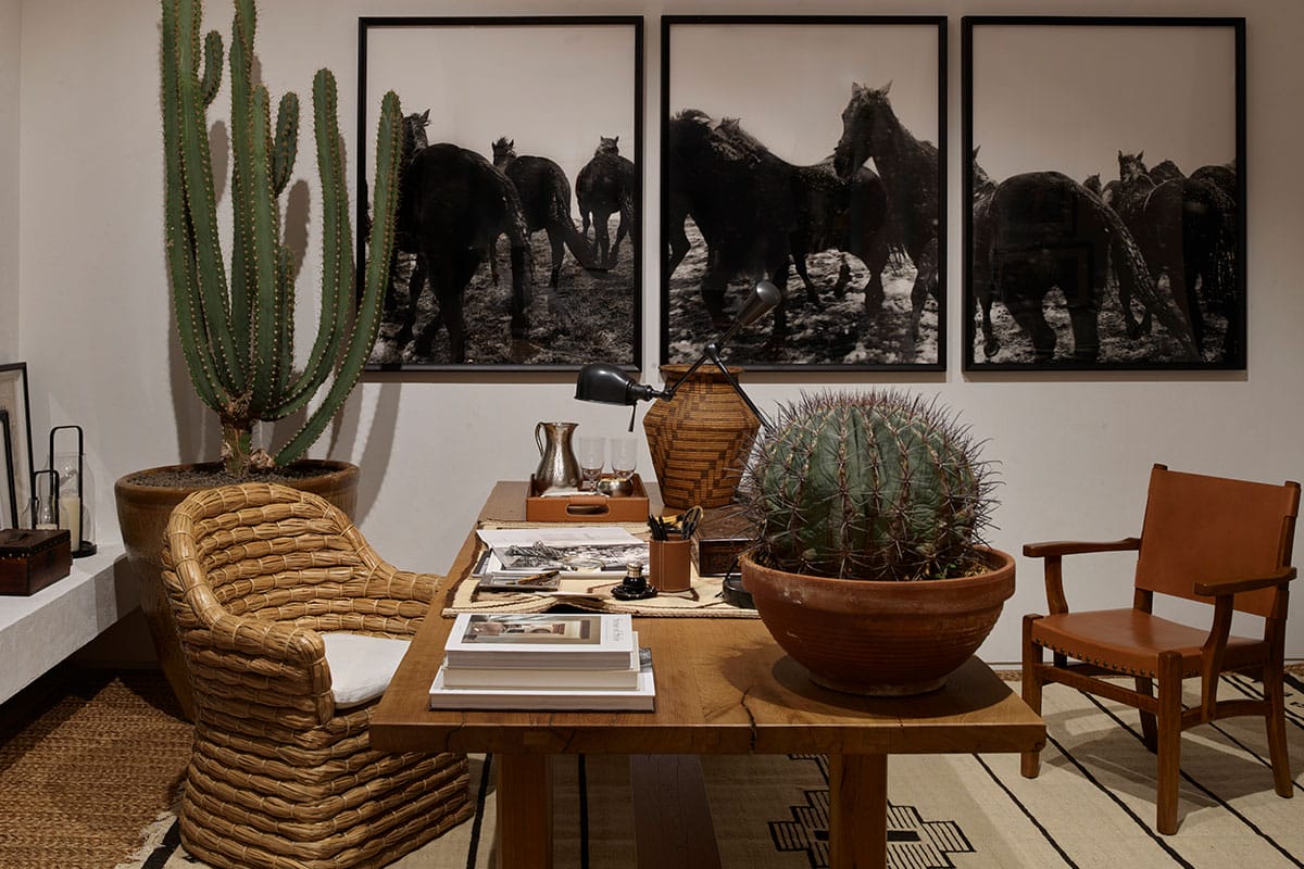 In celebration of more than 40 years of lifestyle-led design, Ralph Lauren brought the best of Americana to the city of Milan with four of its signature living concepts—Estate, Island, Penthouse, and Western—at the Palazzo Ralph Lauren. Arresting and atmospheric, each setting captured the designer’s imaginative world-building through space and form, featuring Italian-made bespoke furnishings crafted in partnership with Haworth Lifestyle. Meanwhile, the new Fall 2025 Canyon Road Collection draws on the authenticity of the American West, particularly textured landscapes and artisanal heritage of the Southwest region. Minimalist in form yet rich in materiality, the collection carries symbolism of Navajo design with contributions from seventh-generation Diné weavers Naiomi and Tyler Glasses. Pared-back furniture pieces are made with materials such as rustic oak and hand-burnished saddle leather, finished with artisanal techniques and detailing.