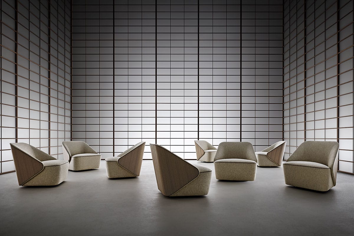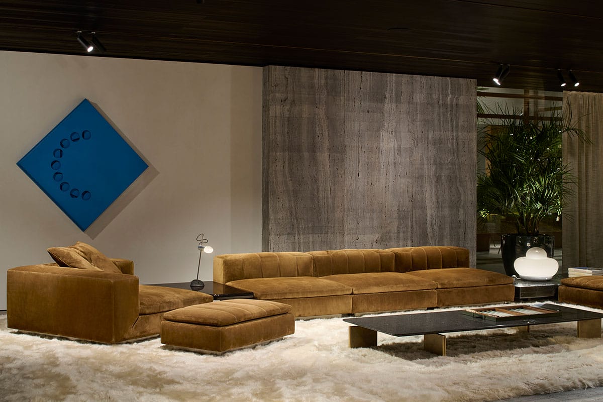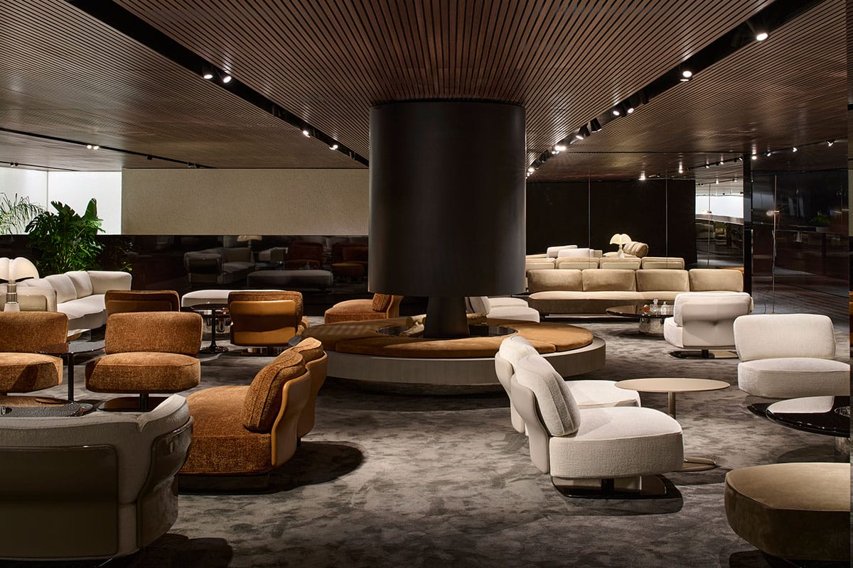 The Minotti Pavilion at this year’s Salone del Mobile.Milano unveiled the brand’s 2025 collection across five immersive settings, each demonstrating an inventive take on contemporary living. The pavilion’s spatial backdrop was enriched with cultural and artistic influences, featuring a selection of works from the Florentine art gallery Tornabuoni Arte. Curated by Minotti Studio, the concept spotlights the distinct design language of five different creators, reimagining the experience of modern indoor and outdoor spaces across residential and hospitality settings. Each backdrop introduced a new seating system: Bézier by Marcio Kogan / Studio MK27, Coupé by Giampiero Tagliaferri, Riley by Hannes Peer, Saki by Nendo, and Vivienne by GamFratesi.