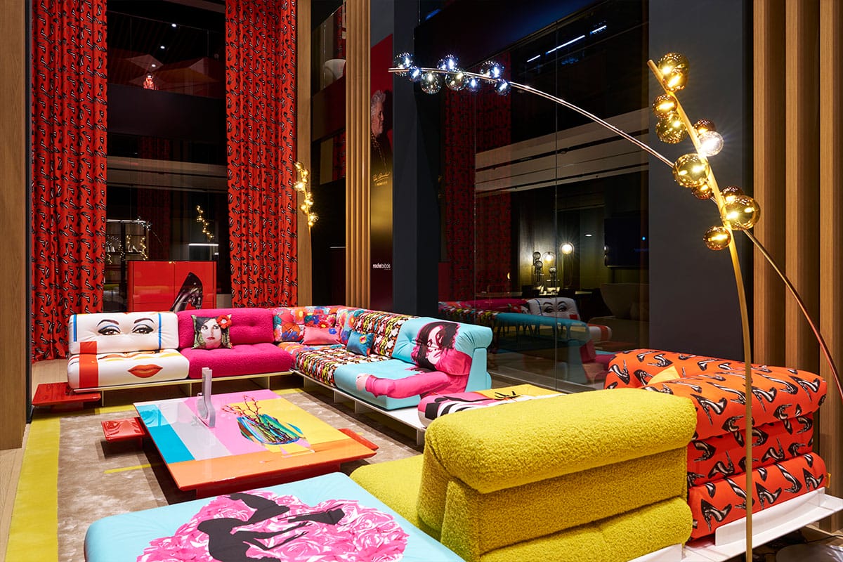 The French-based furniture house’s new Cromática collection, created in collaboration with Spanish filmmaker Pedro Almodóvar, is a colourful synthesis of cinema and décor. Inspired by Almodóvar’s distinctive use of chromatics and imagery, the collection reimagines signature Roche Bobois pieces with theatrical flair. Among the highlights is a limited-edition reinterpretation of the Mah Jong modular sofa—only 50 numbered and signed pieces—upholstered in fabrics printed with stills and posters from films such as Volver and Talk to Her. The filmmaker also lent his creative eye to colourful reissues of the Bubble sofa, coffee and cocktail tables, and the Rondo sideboard, as well as rugs and cushions that mirror his filmic sensibility. Complementing his vision is a flamboyant capsule by his longtime Spanish muse Rossy de Palma, featuring surreal eye-shaped vanity mirrors, fan-inspired vases, graphic rugs, and lamps reminiscent of traditional Spanish peinetas (traditional decorative combs).